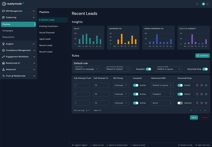 In Readymode, you can build custom playlists, campaigns, and dispositions based on verified voicemail outcomes and real conversations. Your team can reattempt leads intelligently instead of guessing which contacts reached a person.